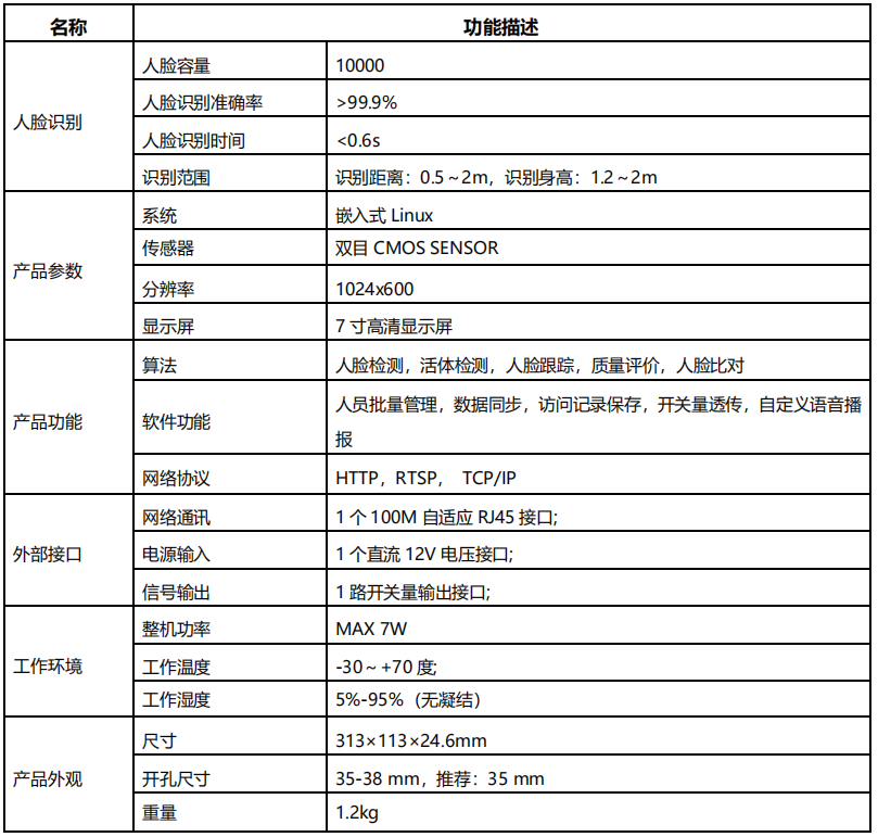 動態人臉識別終端以高性能、高可靠性、高穩定性的嵌入式系統為平臺,以行業領先的深度學習算法為核心,實現了人臉檢測、活體檢測、毫秒級人臉識別及人臉比對應用。產品具有超大容量人臉庫,超高的人臉識別準確率等特點。